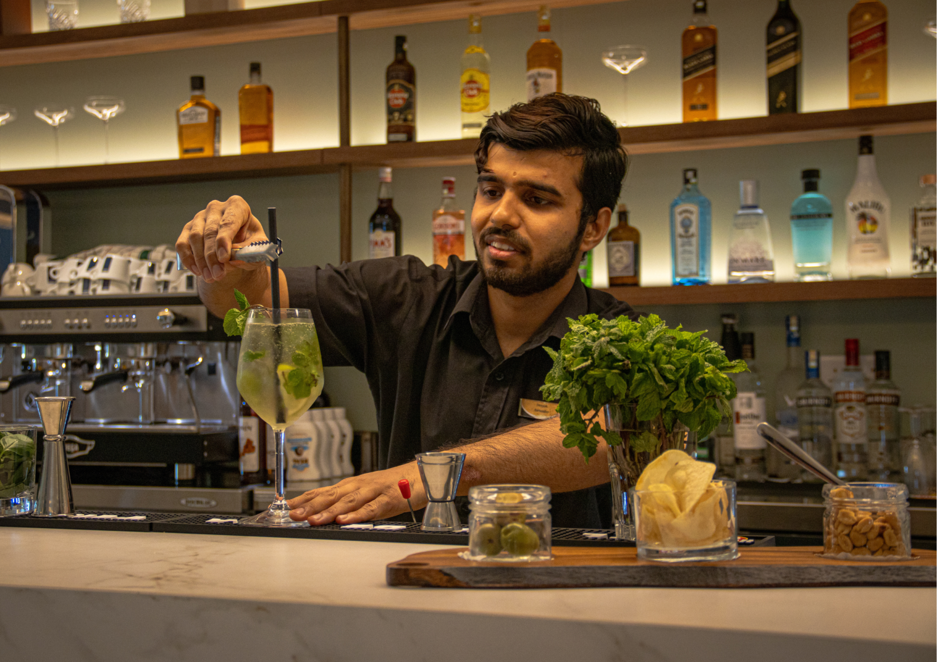 The bar experience is guided by simplicity and balance. Carefully prepared drinks, classic cocktails, and refined non-alcoholic options are served with unhurried care, encouraging you to enjoy each sip at your own pace. Soft background music and attentive yet discreet service complete the experience, allowing you to fully relax without interruption.