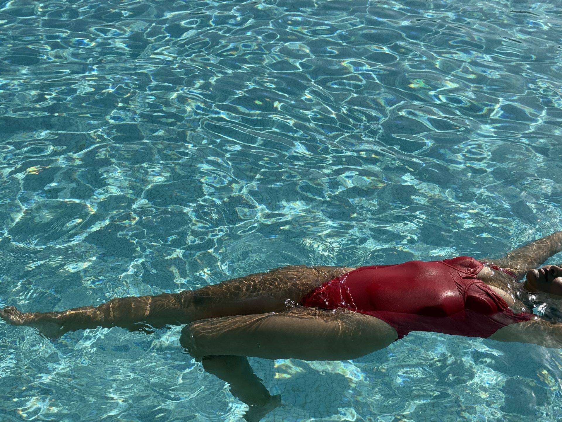 Just a few paces from the rocky area, you’ll find a natural rock inlet where the water is crystal clear and the seabed shimmers in the sun. It’s a quiet corner of the Mediterranean, perfect for a refreshing dip or simply admiring the play of light on the rocks below.